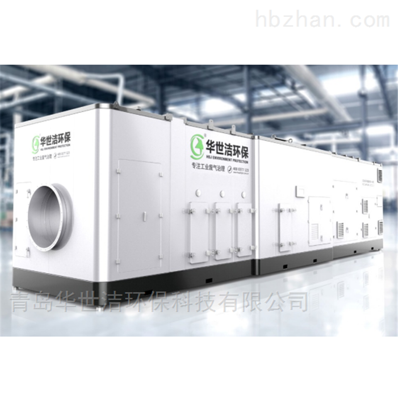 一体式废气处理设备由过滤+沸石转轮+热氧化(RTO/RCO/CO)设备组成,工业废气经过前端过滤后,利用沸石比表面积大和不同温度条件下分子间作用力不同的原理进行设计。低温条件下,大风量的有机废气通过沸石分子筛转轮,VOCs分子吸附其表面,经过沸石转轮的废气可直接排放。吸附有大量VOCs的沸石转轮部分进入高温脱附区,利用小风量的高温废气将沸石转轮上的VOCs分子脱附出来,形成高浓度废气,送入后端的废气氧化系统催化氧化处理,净化后的废气可直接排放。